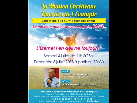 La Mission Chrétienne Ouvriers de l’Évangile vous invite à son 3ème séminaire annuelle le samedi 04/07/2015 de 11H-18H et le dimanche 05/07/2015 à partir de 10H30, au 7 RUE DES FRÈRES LUMIÈRE 45800 Saint Jean de Braye (ORLEANS), InfoLine au 06 51 91 40 80 ou 09 51 66 05 80