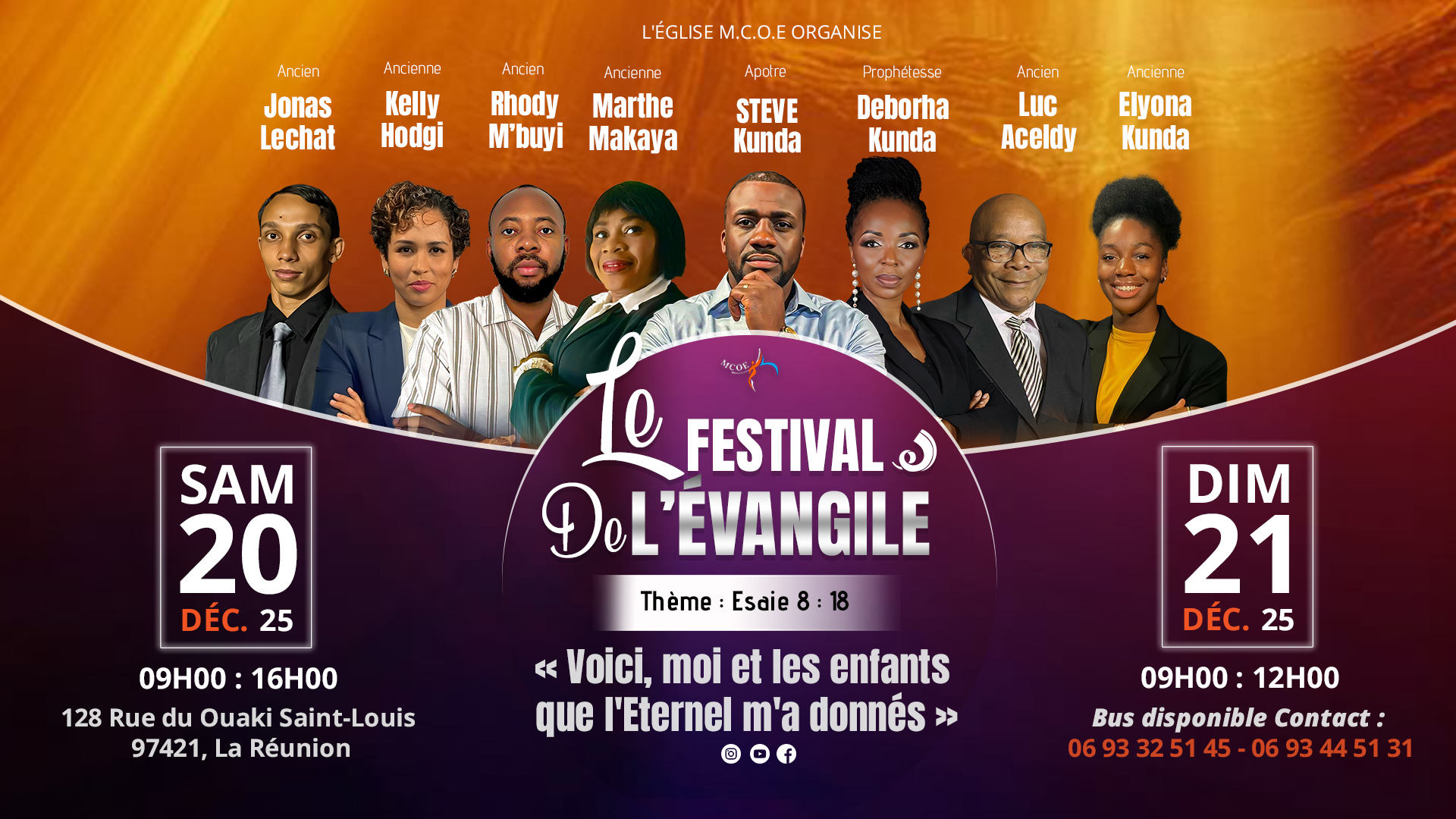 Mis en avant décembre 20 @ 9h00 - décembre 21 @ 12h00 LE FESTIVAL DE L’ÉVANGILE Saint Louis 128 rue du Ouaki, La Rivière, Réunion
